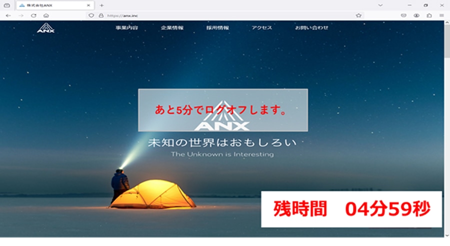 終了時間が近づくと、ログオフされる旨のメッセージが表示されます。